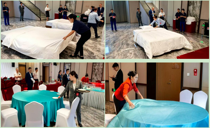 秉持 “人才強(qiáng)企,服務(wù)興業(yè)” 的發(fā)展理念,南日海洋集團(tuán)始終將人才培育與服務(wù)升級(jí)列為企業(yè)發(fā)展的核心目標(biāo)。本次技能大賽精準(zhǔn)聚焦客房服務(wù)、中餐服務(wù)兩大關(guān)鍵板塊,選手們?cè)谫悎?chǎng)展現(xiàn)專業(yè)風(fēng)采的同時(shí),更有效推動(dòng)了兩店在服務(wù)標(biāo)準(zhǔn)優(yōu)化、管理模式創(chuàng)新上的深度交流與互學(xué)互鑒,不僅為莆田國(guó)企酒店聯(lián)盟的深化構(gòu)建夯實(shí)基礎(chǔ),也為酒店行業(yè)標(biāo)準(zhǔn)的細(xì)化完善積累了關(guān)鍵實(shí)踐經(jīng)驗(yàn),切實(shí)助力海島旅游服務(wù)品質(zhì)實(shí)現(xiàn)提質(zhì)增效。